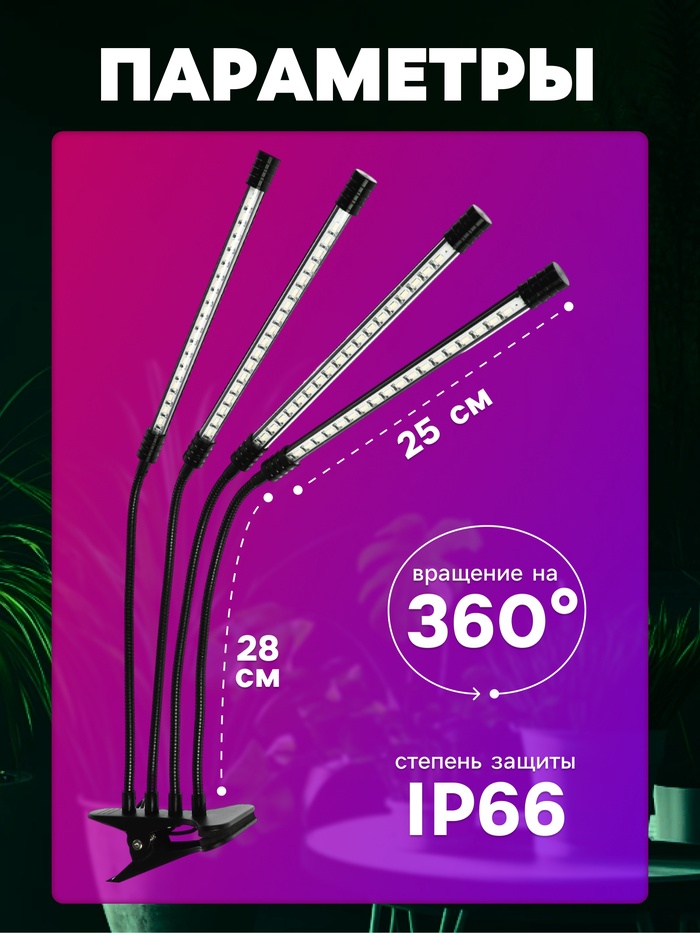 Этот фитосветильник — не просто источник света, а настоящий инструмент для создания идеальных условий для роста ваших растений. С ним вы сможете наслаждаться здоровой и пышной зеленью в любое время года, независимо от условий окружающей среды. Позаботьтесь о своих растениях с умом и дайте им всё необходимое для процветания!