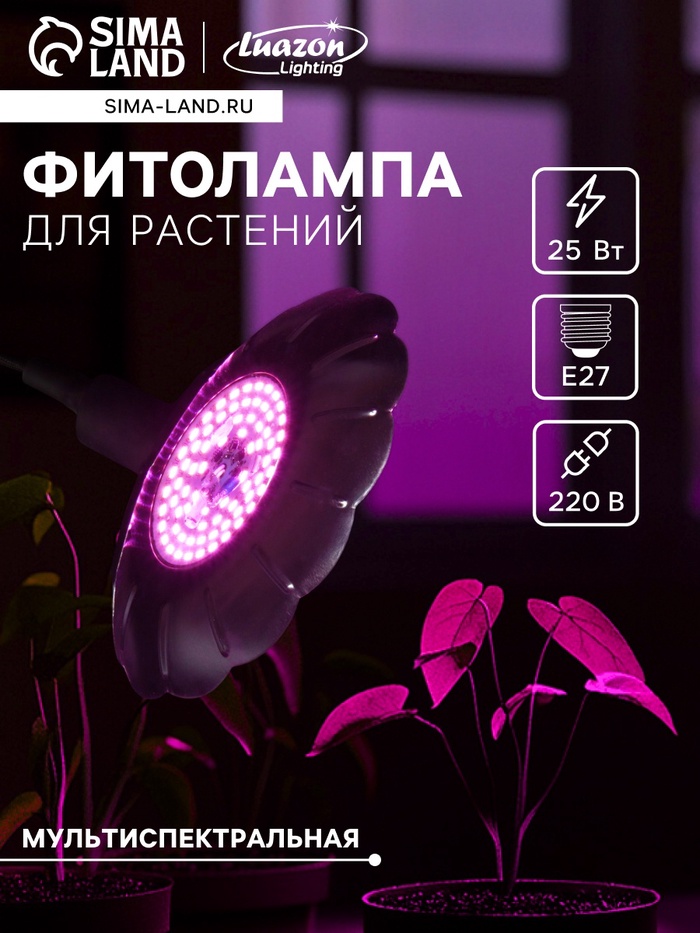 Фитосветильник "Ромашка", Е27, 25 Вт, 160 градусов, 220 В, мультиспектральный