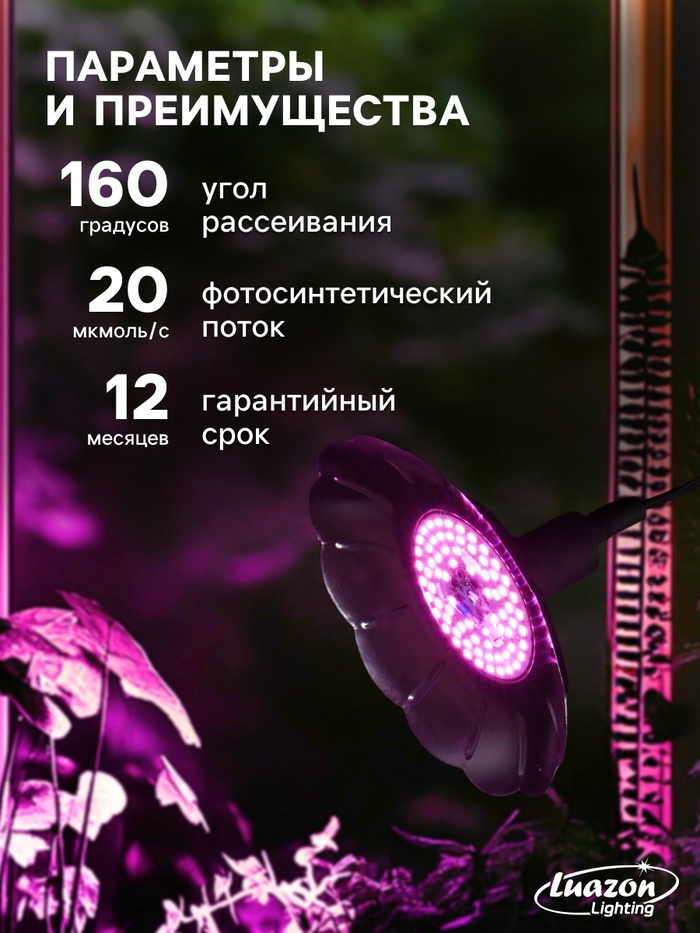 Ориентируясь на стадию роста растения подбирается необходимый световой поток.