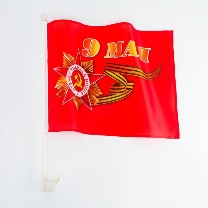 Флаг 9 Мая, 30×45 см, полиэфирный шелк, с креплением на машину
