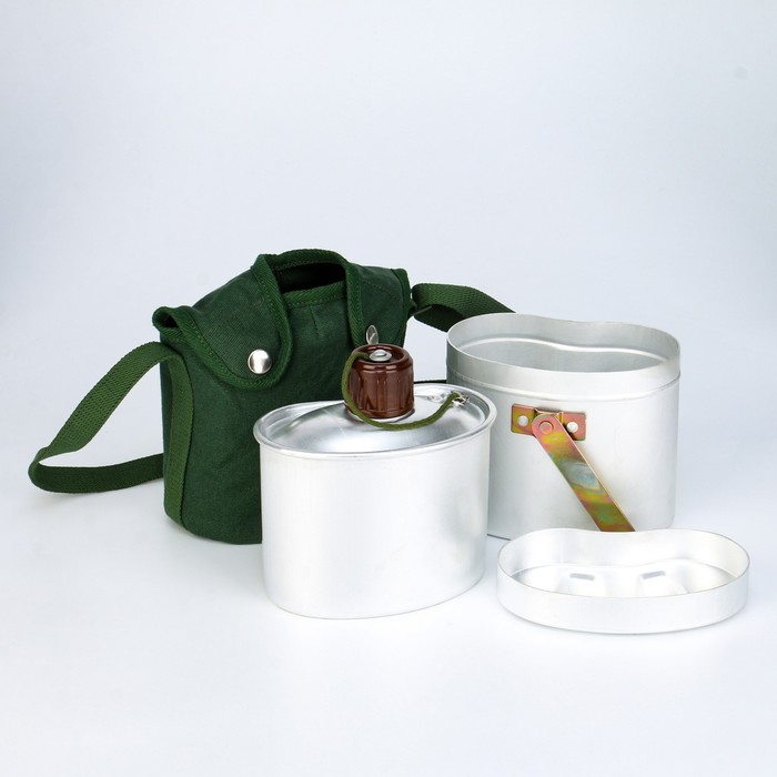 Фляжка армейская походная отлично подходит для туризма и походов. Она оснащена металлическим котелком, в котором можно нагреть воду или приготовить порцию еды: для этого пригодится таганок и сухое горючее.