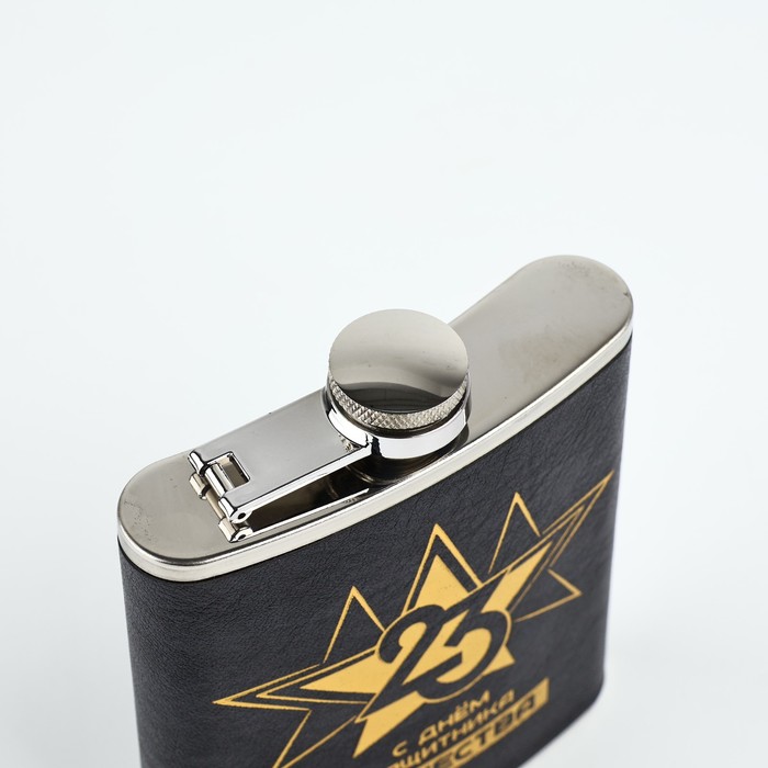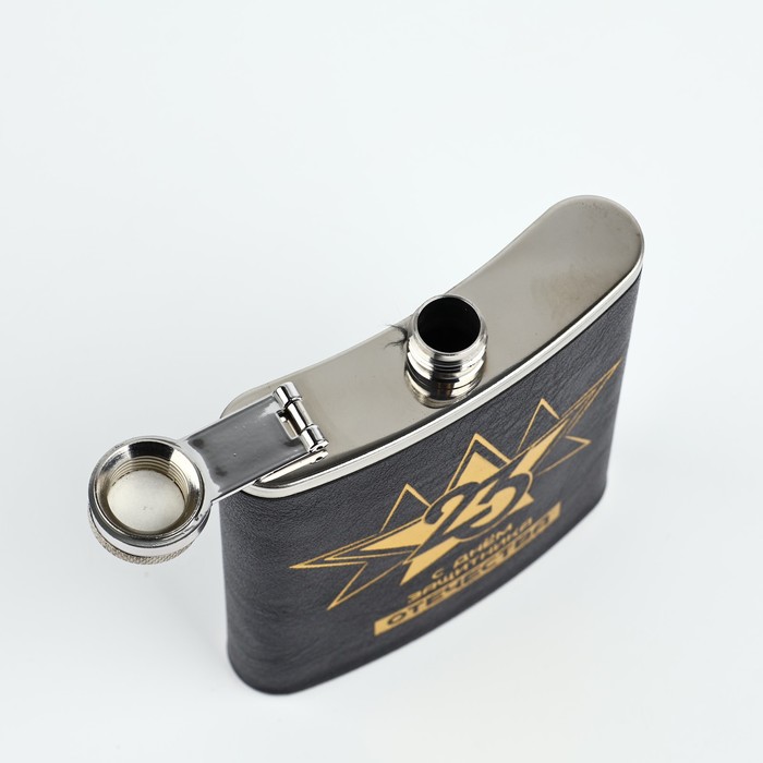 Фляжка «С Днем Защитника» — стильный и функциональный аксессуар для хранения и переноски жидкостей. Она выполнена из коррозионностойкой стали, что обеспечивает долговечность и надёжность изделия. Объём фляжки составляет 210 мл, что позволяет вместить достаточное количество жидкости.