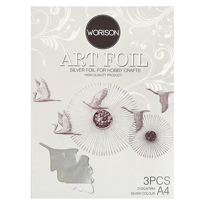 Фольга для чеканки А4, 3 листа, серебряная, в папке