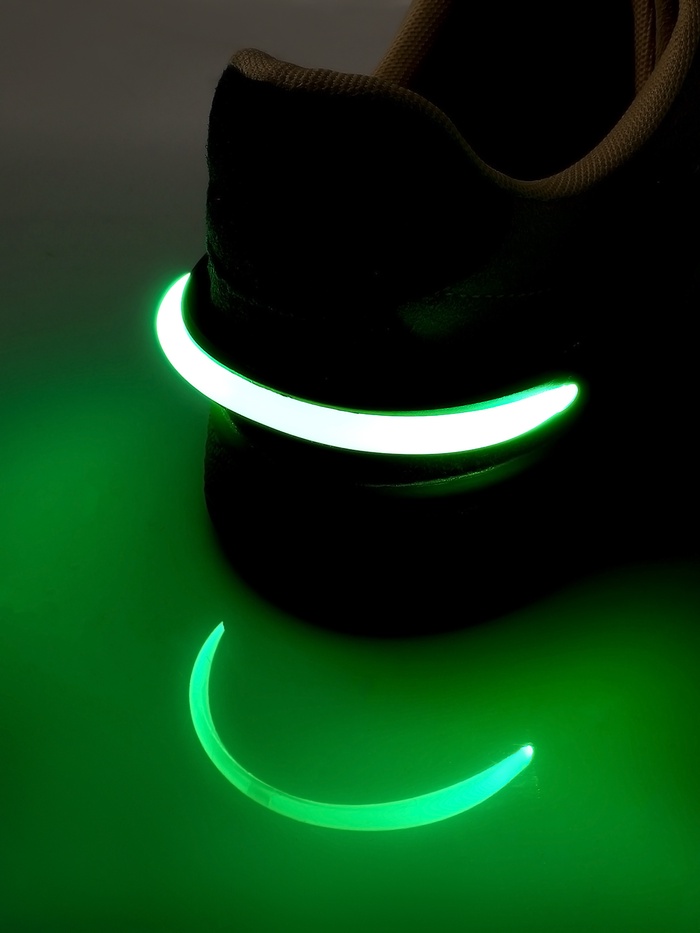 Легкий светодиодный фонарик используется для безопасных занятий спортом или прогулок в тёмное время суток. Имеет два режима: мигание и непрерывное свечение. Изделие крепится к пятке обуви, на запястье, велосипед, сумку и т. д.