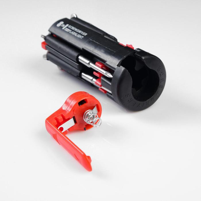 Потяните оранжевую ручку по стрелке вверх, чтобы открыть отсек для батареек. Поместите элемент питания внутрь, соблюдая полярность. Возможно, потребуется приложить усилие, так как конструкция предполагает плотное расположение деталей для большей надёжности и увеличения срока эксплуатации.