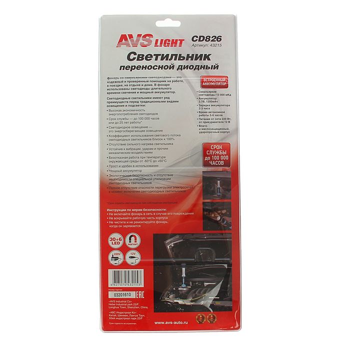 Используйте переносной фонарь AVS CD826 в поездке, на отдыхе или дома. Он оснащён яркими светодиодами длительного действия 13000 MCD, что обеспечивает безотказную работу при температурах окружающей среды от –60 до +60 ℃ и низкое энергопотребление.