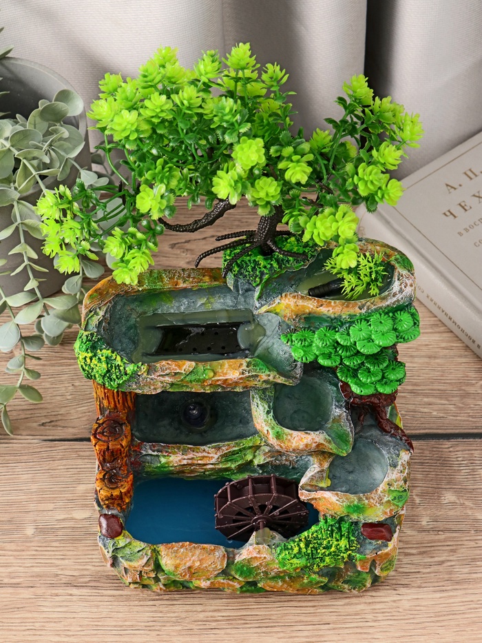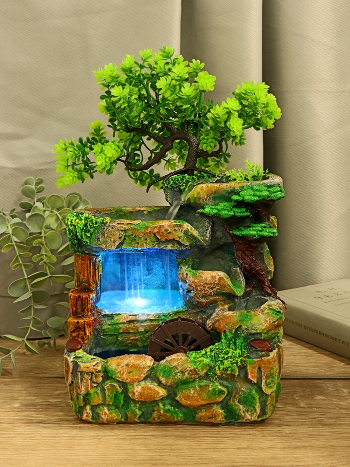 Фонтан «Каменная стена под деревом», 30×17 см, с подсветкой, без шарика