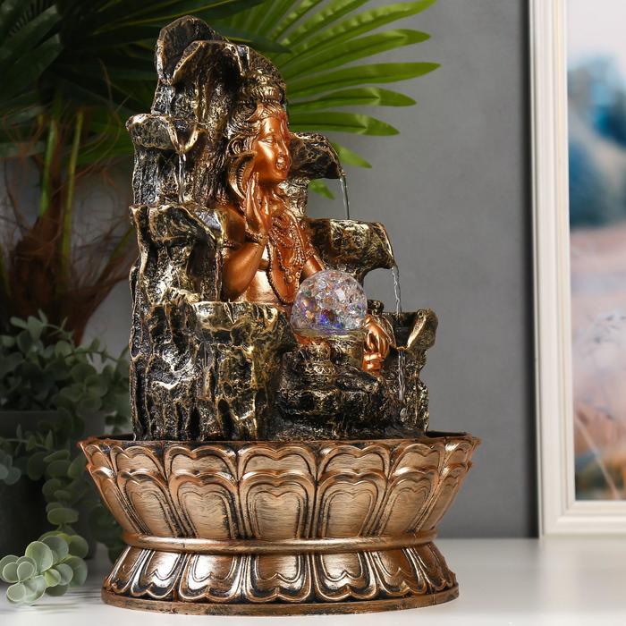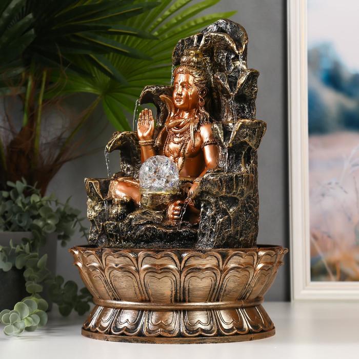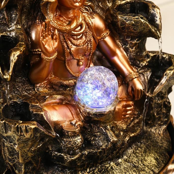 Фонтан настольный от сети, подсветка "Шива у скалы с водопадом" 42х28х28 см