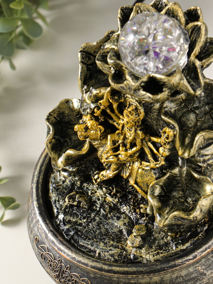 Этот настольный фонтан с подсветкой создаёт атмосферу гармонии и движения в вашем пространстве. Изображение богини в центре композиции символизирует защиту и внутреннюю силу, а мягкое течение воды приносит умиротворение. Компактный размер делает его идеальным акцентом для рабочего стола, домашнего алтаря или зоны для медитации.