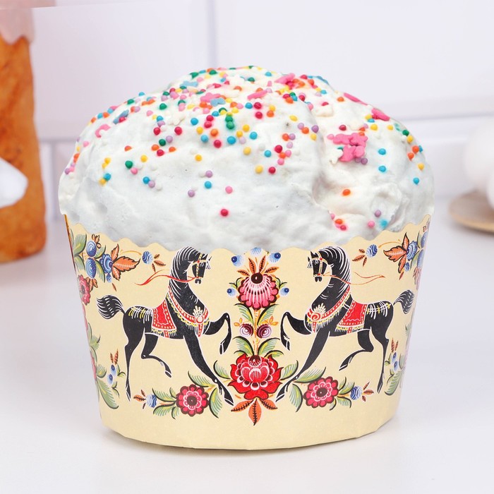 Форма бумажная для кулича Деко-про «Городец», 11×8.5 см, молочный