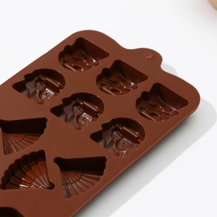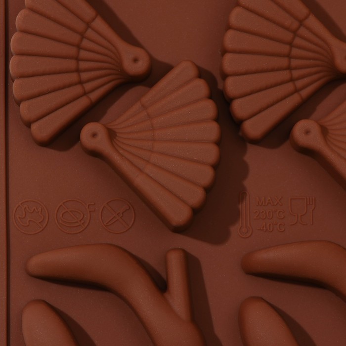 Форма для кондитерских украшений Доляна «Дамский набор», силикон, 21×11×1,5 см, 14 ячеек, коричневая