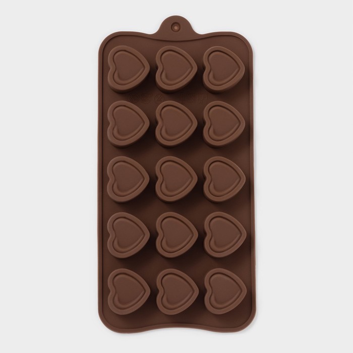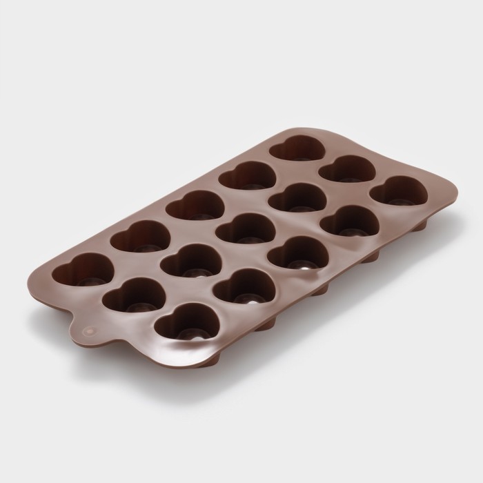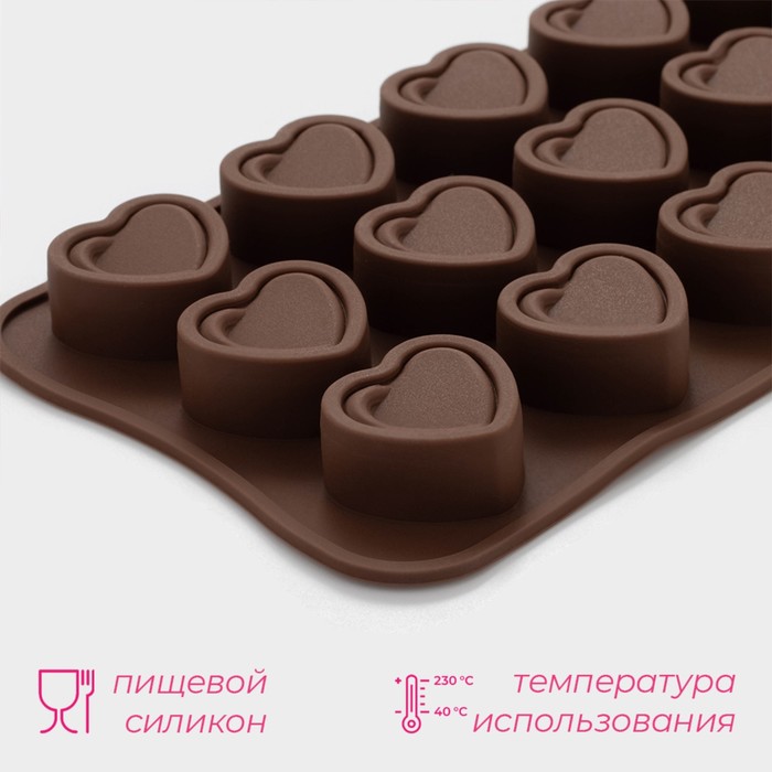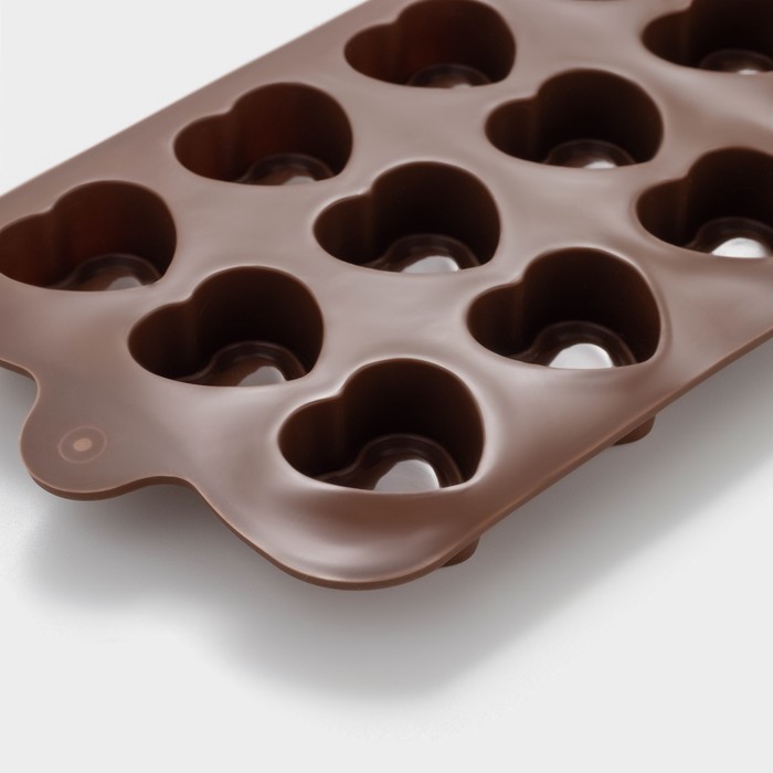 Форма для конфет и шоколада Доляна «Сердце», силикон, 21×10×1.5 см, 15 ячеек (2.9×2.7 см), коричневая