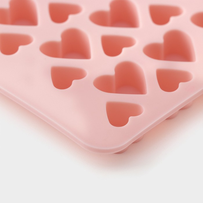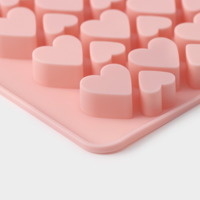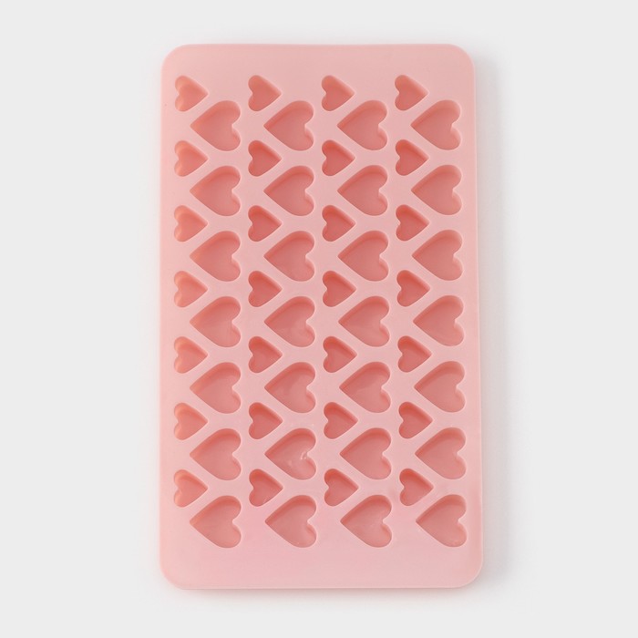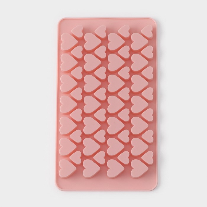 Форма для конфет и шоколада Доляна «Сердечки», силикон, 19.5×11.5 см, 56 ячеек (2×2/1.5×1.5 см), розовая