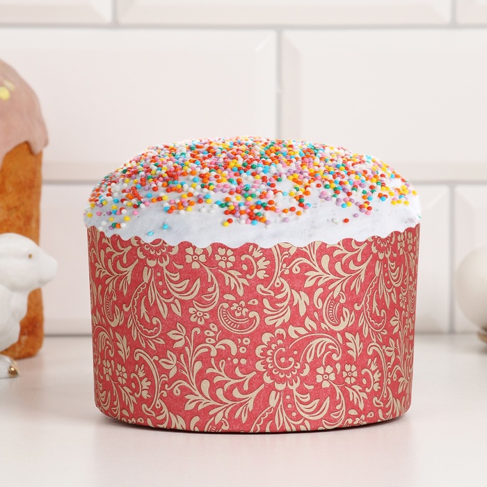 Форма для кулича бумажная Деко-про «Флора красная», 13.4×9 см, красная