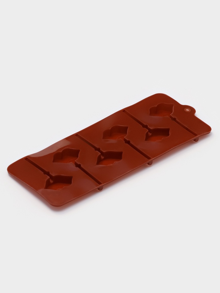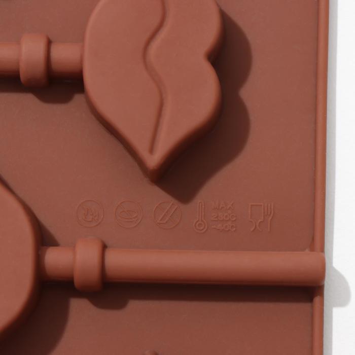 Форма для леденцов Доляна «Поцелуй», силикон, 24×9.4×1.5 см, 6 ячеек (4×2.4 см), с палочками, коричневая