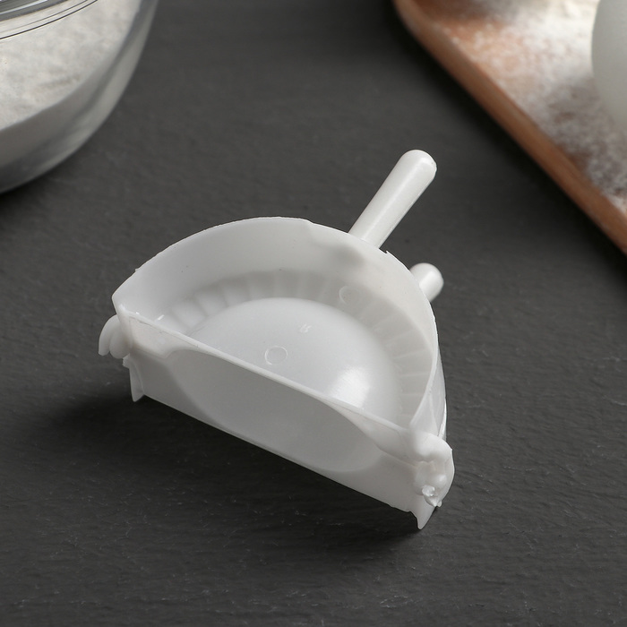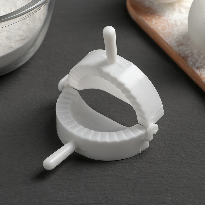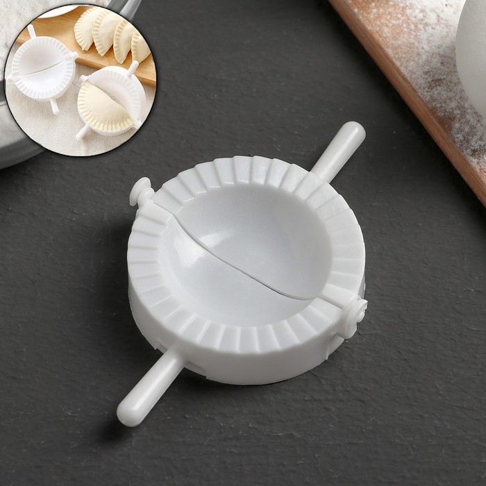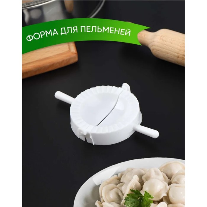 Форма для лепки пельменей, d=7 см, цвет белый превратит процесс приготовления традиционного блюда в увлекательное занятие. Эргономичный инструмент аккуратно складывается и резными краями эффективно защипывает тесто. Ваша задача положить на круглую насадку заготовку и необходимое количество мясного фарша. Пельмени получаются идеально ровными и удивительно красивыми.