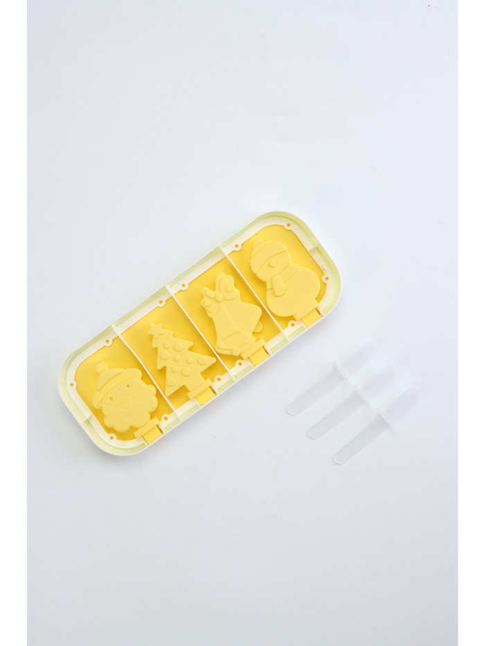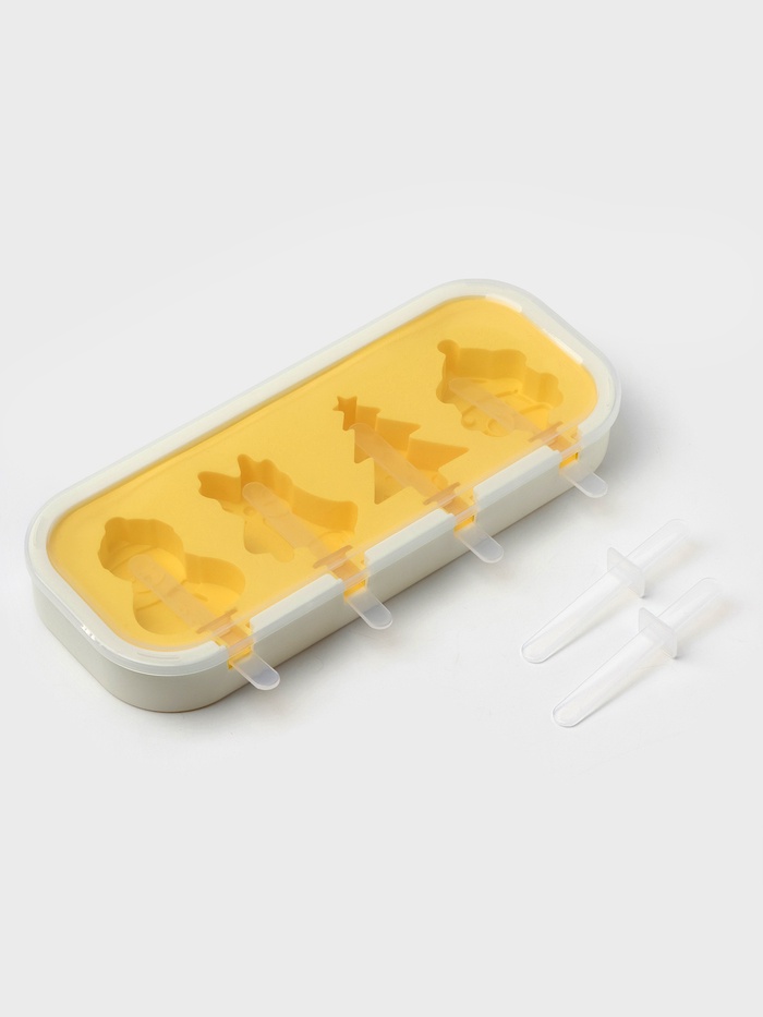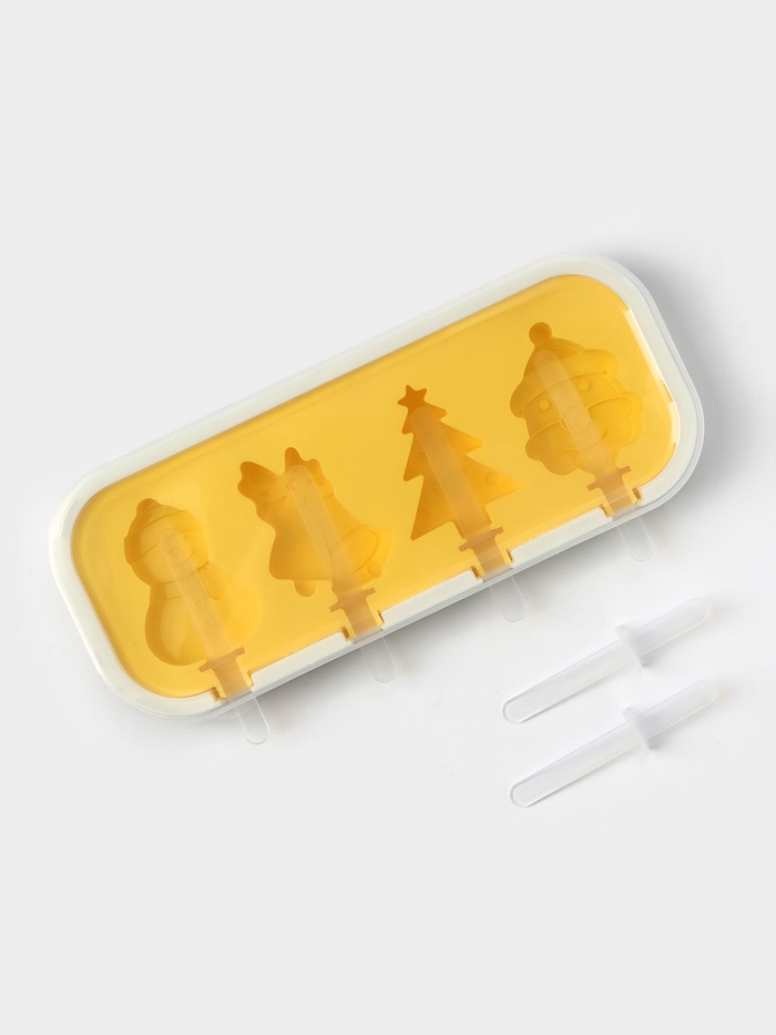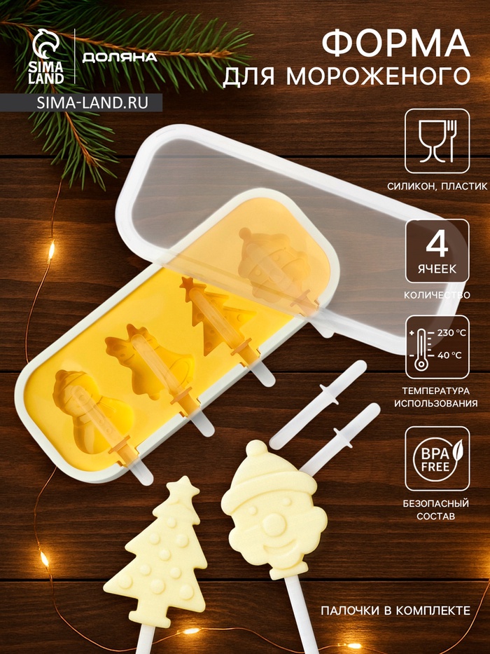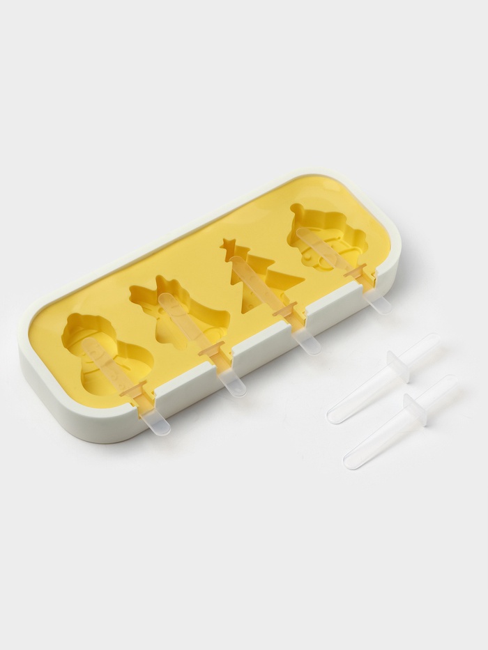 Форма для мороженого с крышкой Доляна «Новый год», силикон, 24×10×3 см, 4 ячейки, с палочками, жёлтая