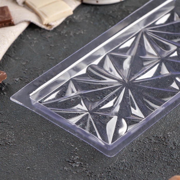 Форма для шоколада «Цветы» размером 18×8 см изготовлена из прозрачного пластика. Она подходит для изготовления шоколадных плиток и других кондитерских изделий. Благодаря этой форме вы сможете создавать уникальные шоколадные подарки и украшения для тортов.