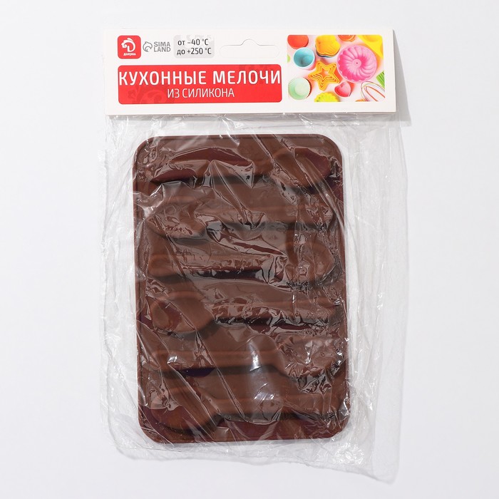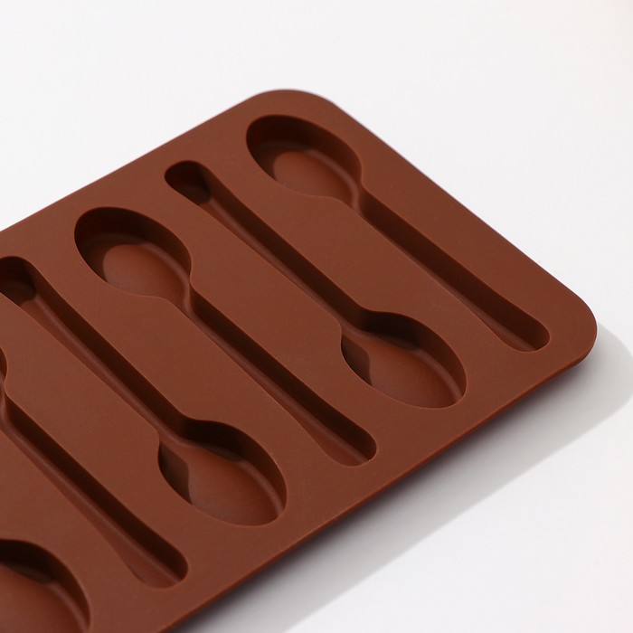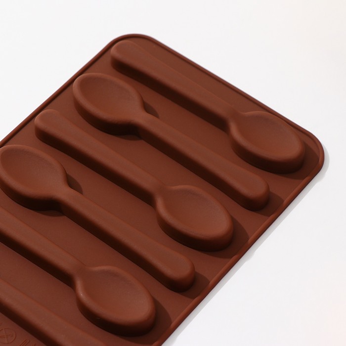 Форма для шоколада Доляна «Ложечки», силикон, 13,5×9,5×0,7 см, 6 ячеек (8,3×1,8 см), цвет коричневый
