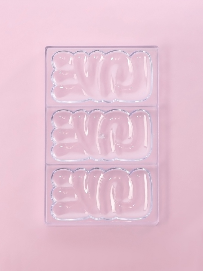 - Легкое извлечение: Шоколад легко извлекается из формы, сохраняя четкость надписи.