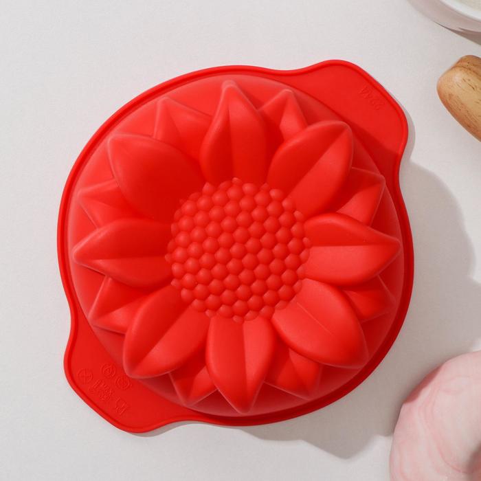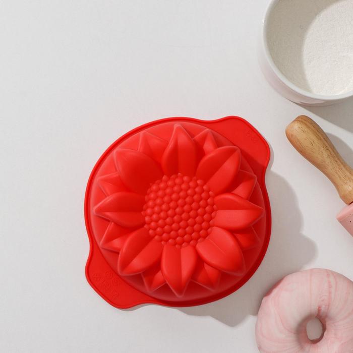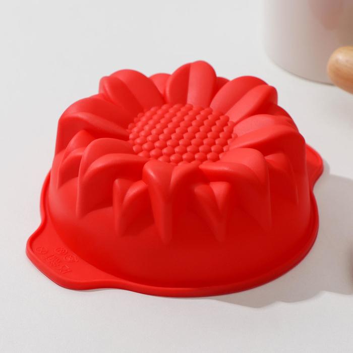 Форма для выпечки Доляна «Подсолнух», силикон, 15.3×13 см, внутренний размер 12×12×4.5 см, цвет красный