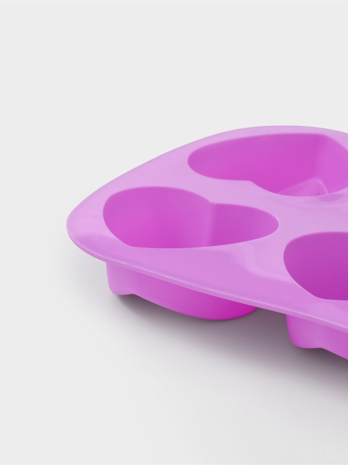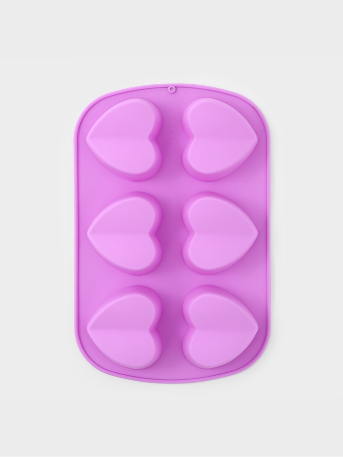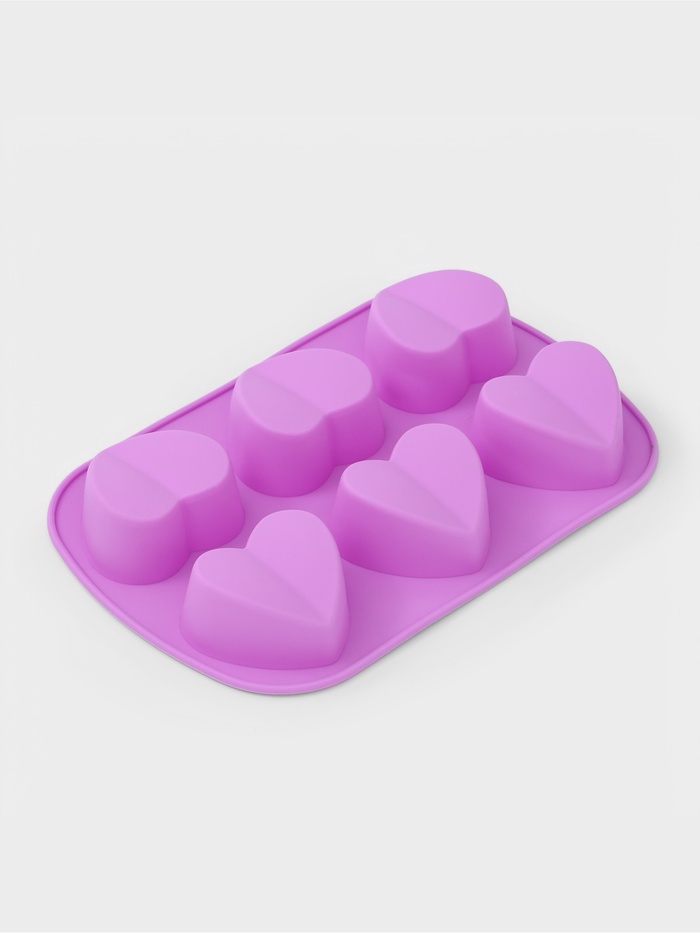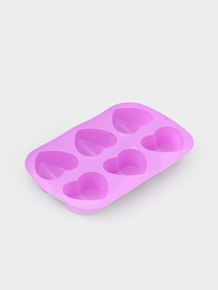 Форма для выпечки Доляна «Сердце напополам», силикон, 25.8×17×3.2 см, 6 ячеек (7×6.5×3 см), сиреневая