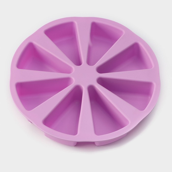 Форма для выпечки Доляна «Сладости. Кусочки торта», силикон, d=26 см, 8 ячеек (9.5×5.8 см), сиреневая
