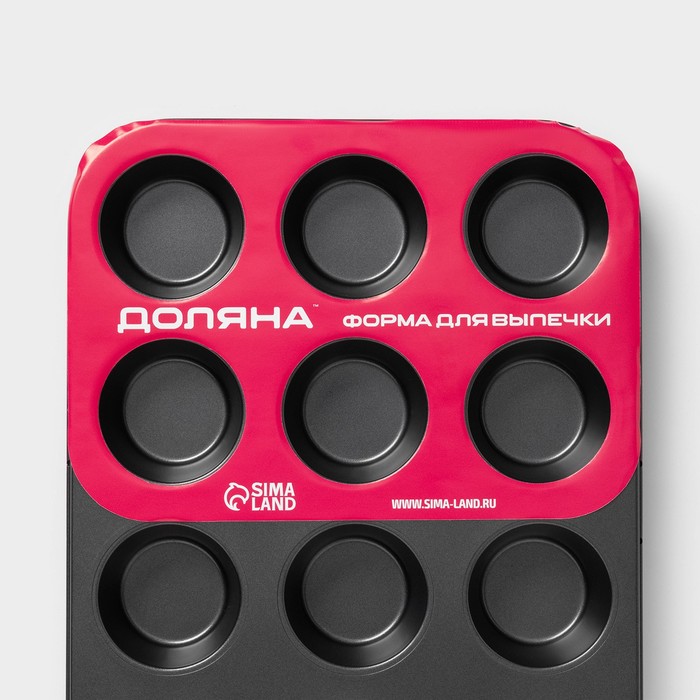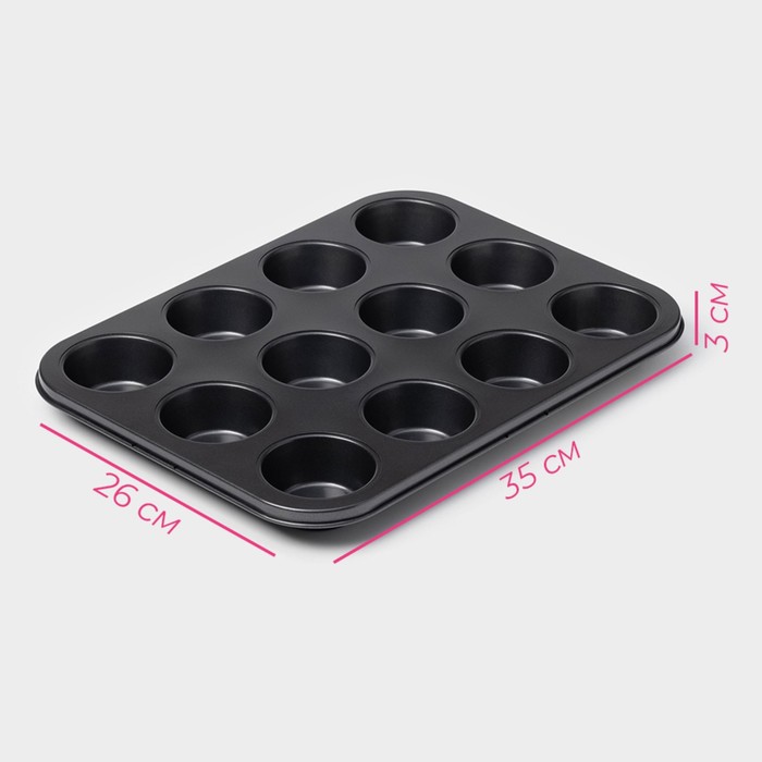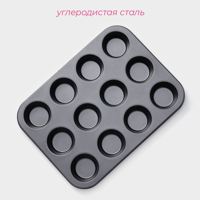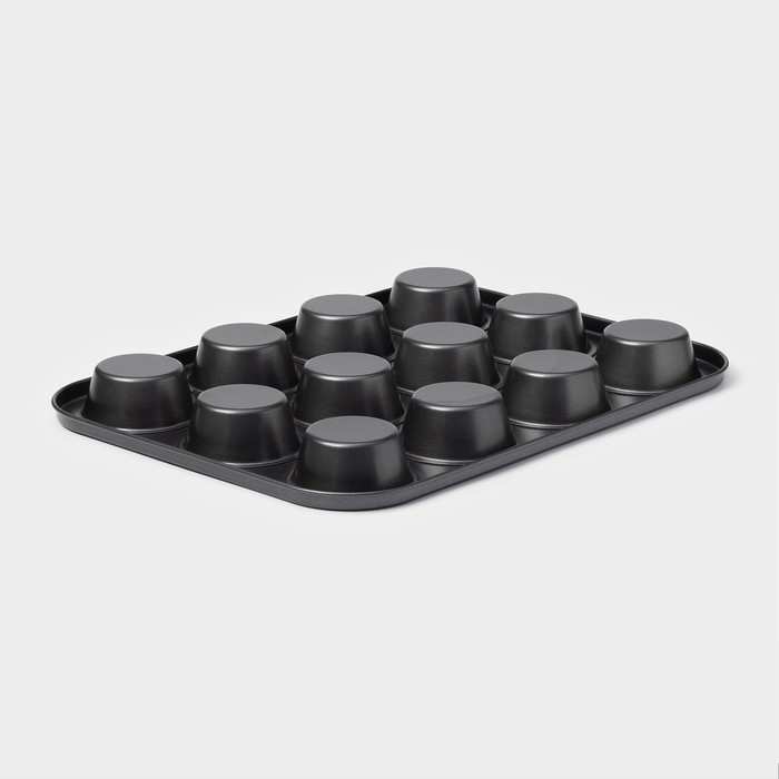 Форма для выпечки Доляна «Жаклин», 35×26×3 см, 12 ячеек, d=6,5 см, антипригарное покрытие, цвет чёрный