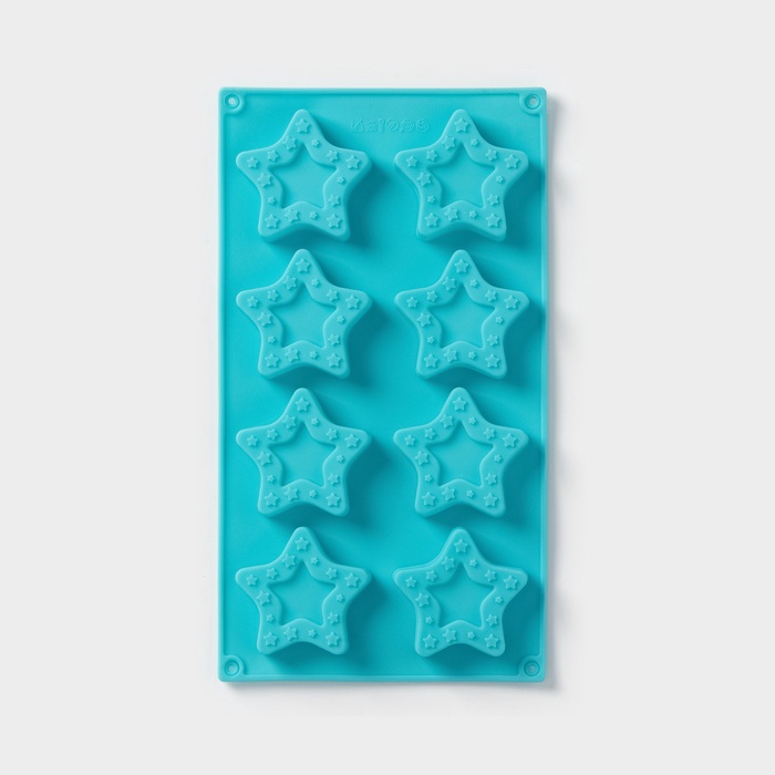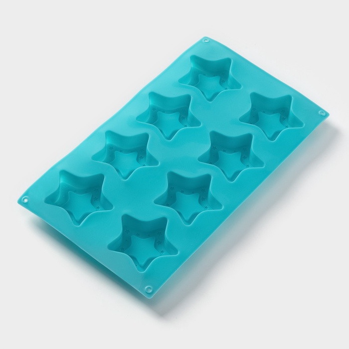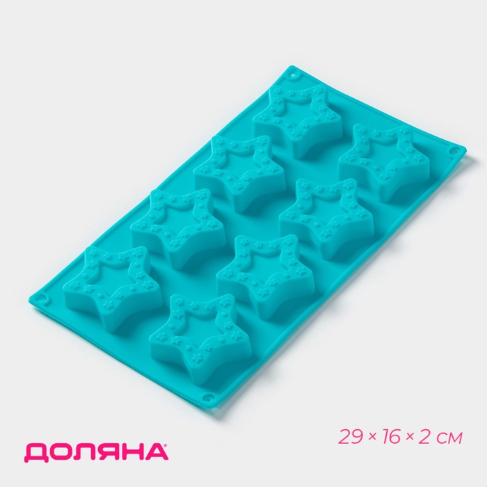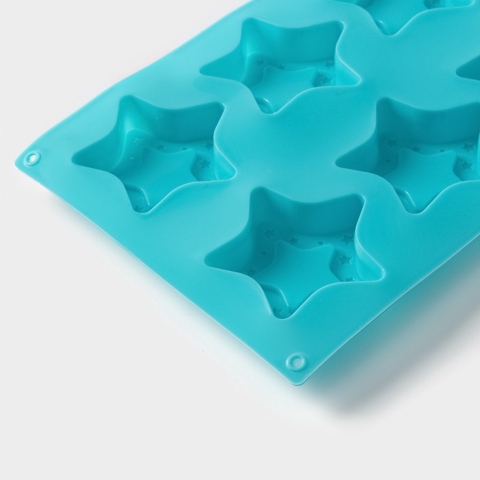 Форма для выпечки Доляна «Звёздочки», силикон, 8 ячеек, 29×16×2 см, ячейка 6.3×6 см, глубина 1.7 см, голубая