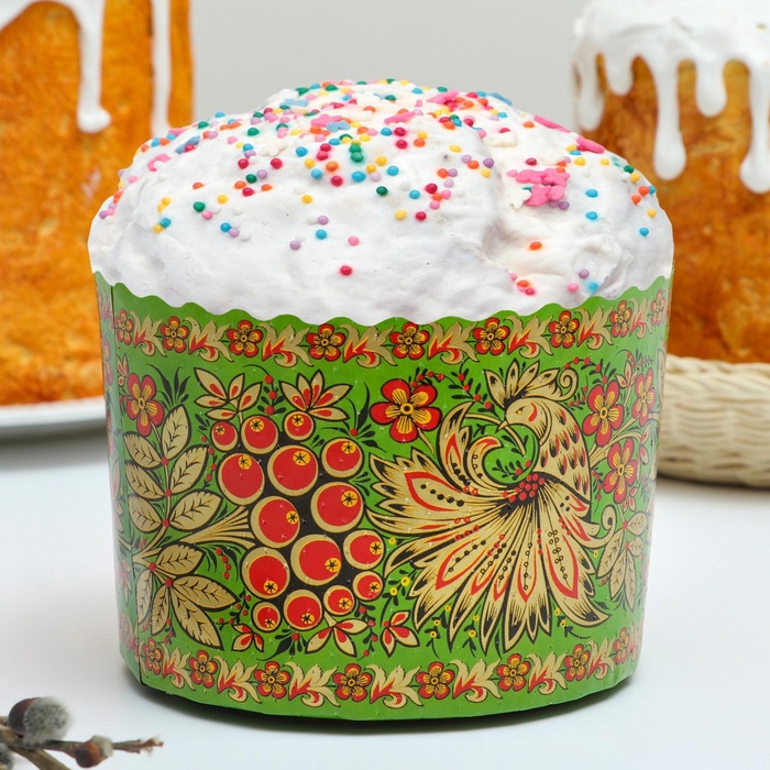 Форма для выпечки кулича бумажная Деко-про «Хохлома», одноразовая, 13.4×10 см, МИКС