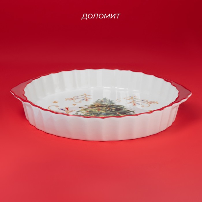 Форма для запекания новогодняя Доляна «Волшебное дерево», доломит, 1.3 л, 28.8×25×4.3 см, белая, красная