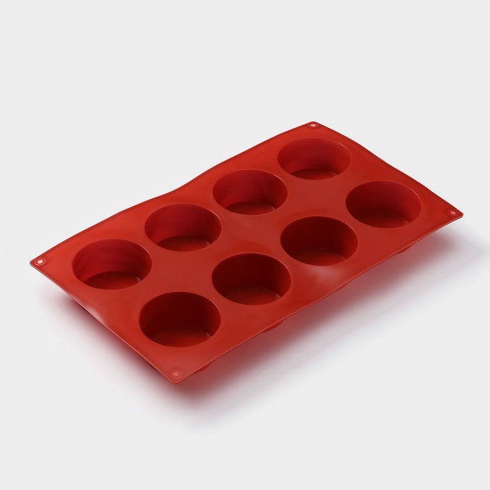 Форма силиконовая для выпечки Доляна «Фигуры.Круг», 29×17×2,7 см, 8 ячеек (5,8×2,7 см), цвет коричневый