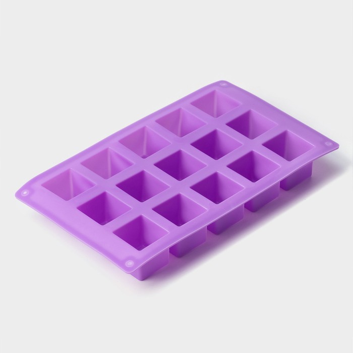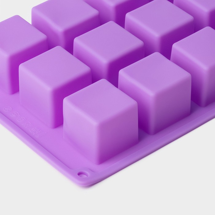 Форма силиконовая для выпечки Доляна «Фигуры.Куб», 26×15×3,2 см, 15 ячеек (3,4×3,4см), цвет фиолетовый