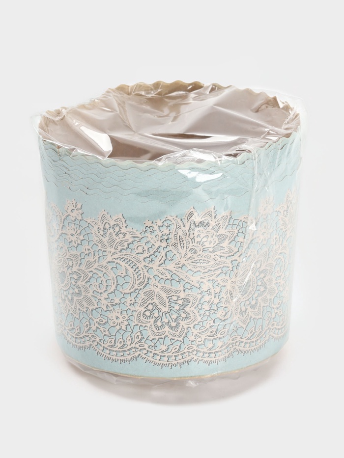 Бумажные формы для выпечки куличей «Кружева» подготовлены к пасхальному сезону. Голубой фон украшен рисунком и праздничной надписью. В наборе 10 одноразовых форм круглой формы, подходящих для духового шкафа.