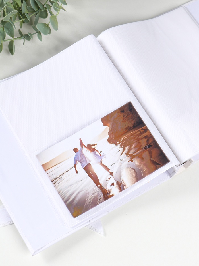 Фотоальбом на 100 фото 10х15 см "Белоснежный с бантом" в коробке 4х22х23 см