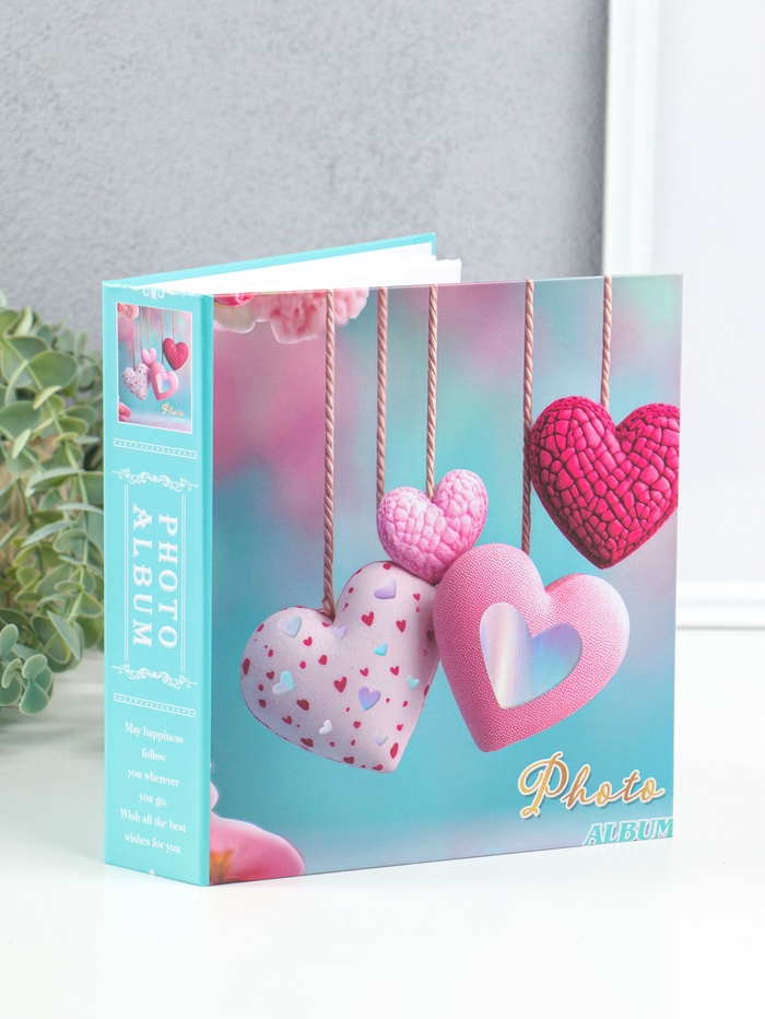 Фотоальбом на 100 фото 13х18 см "Сердца на веревочках" в коробке 5х18х20,5 см