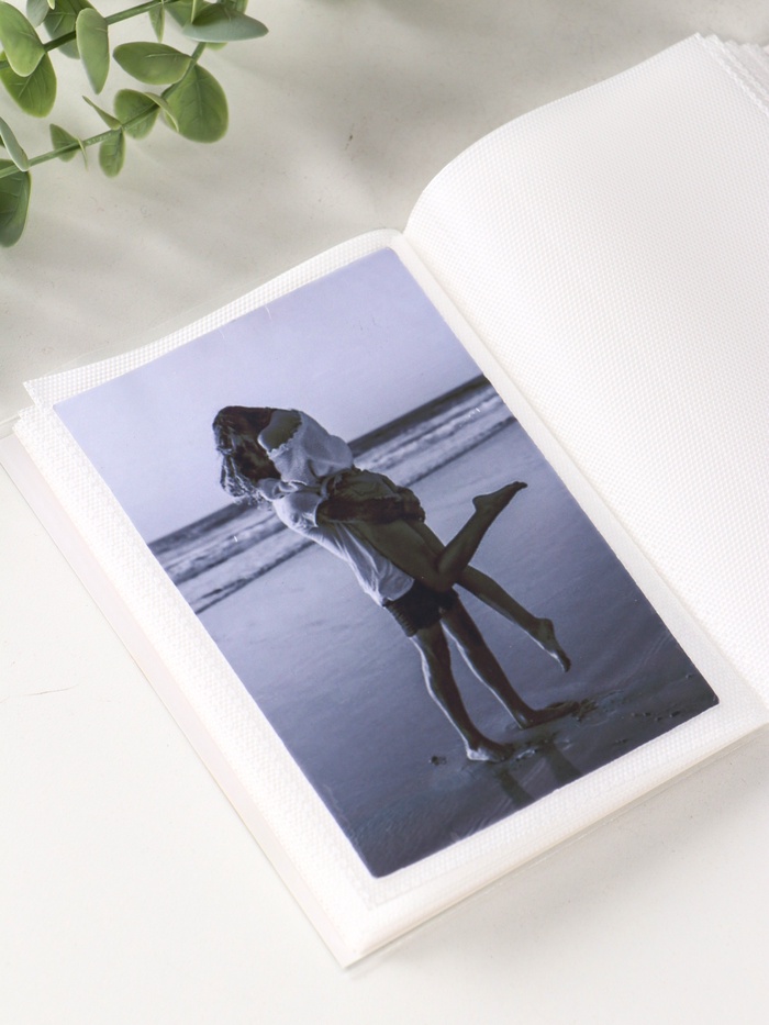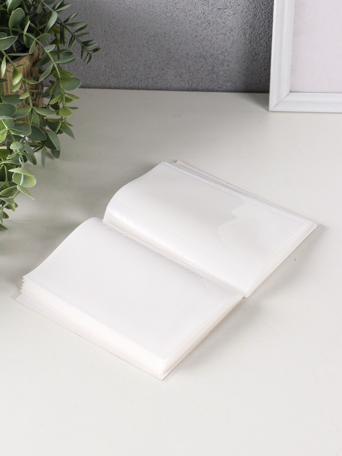 - Прозрачные страницы из пластика надёжно защищают фотографии от повреждений и пыли.