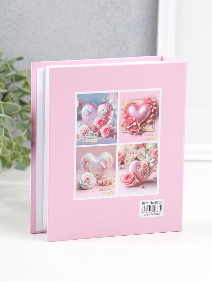 Фотоальбом на 40 фото 10х15 см "Розовое сердце в цветах" в коробке 4,5х14х17 см