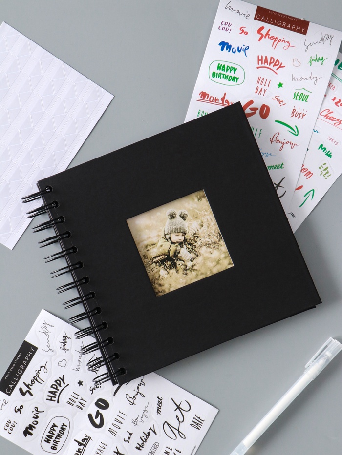 - Готовность к творчеству: полный набор аксессуаров — уголки, стикеры и ручка — вдохновляет на создание уникальных композиций без необходимости докупать что-либо отдельно.
