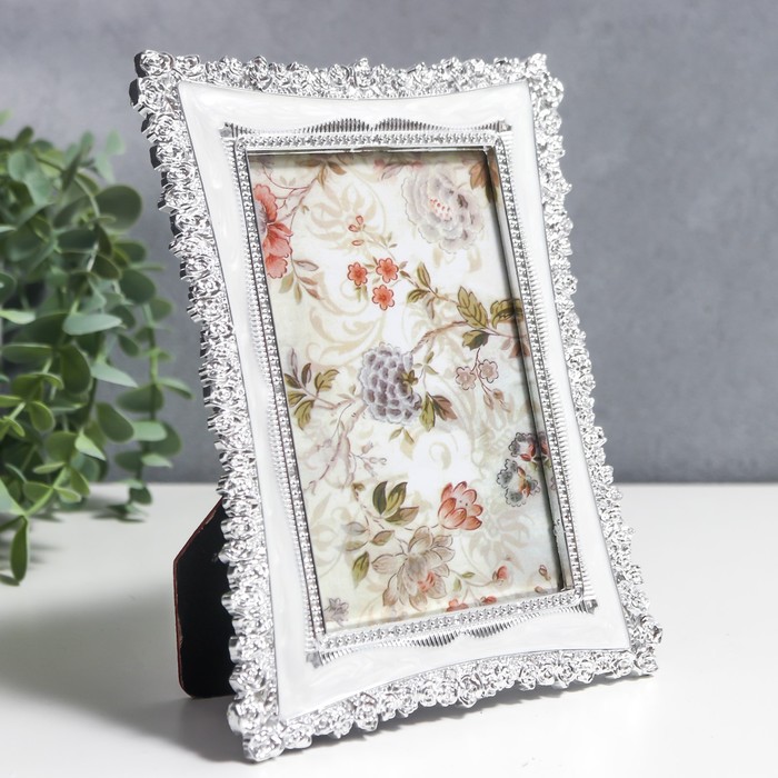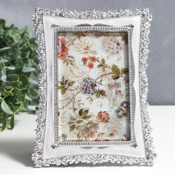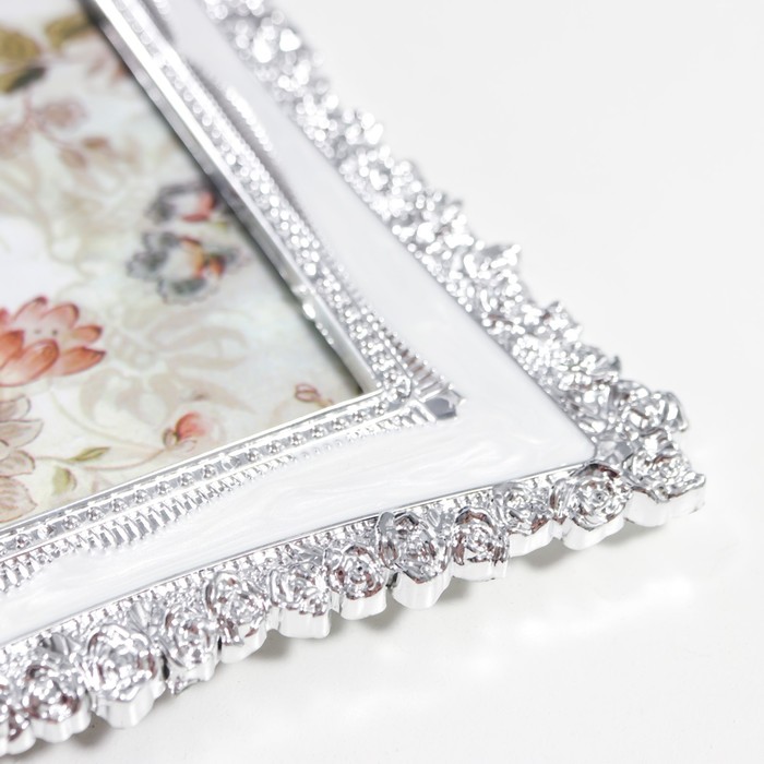 Нежная перламутровая поверхность этой фоторамки переливается мягким светом, создавая эффект росистых лепестков. Рельефные розы по периметру добавляют объёма и изысканности, превращая стандартное фото 10×15 в законченную художественную композицию, где снимок и обрамление дополняют друг друга.