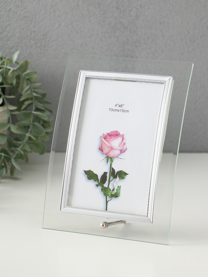 Фоторамка для фото 10×15 см «Серебряный кант», стекло, вертикальная, выгнутая, прозрачная, 15.5×20 см