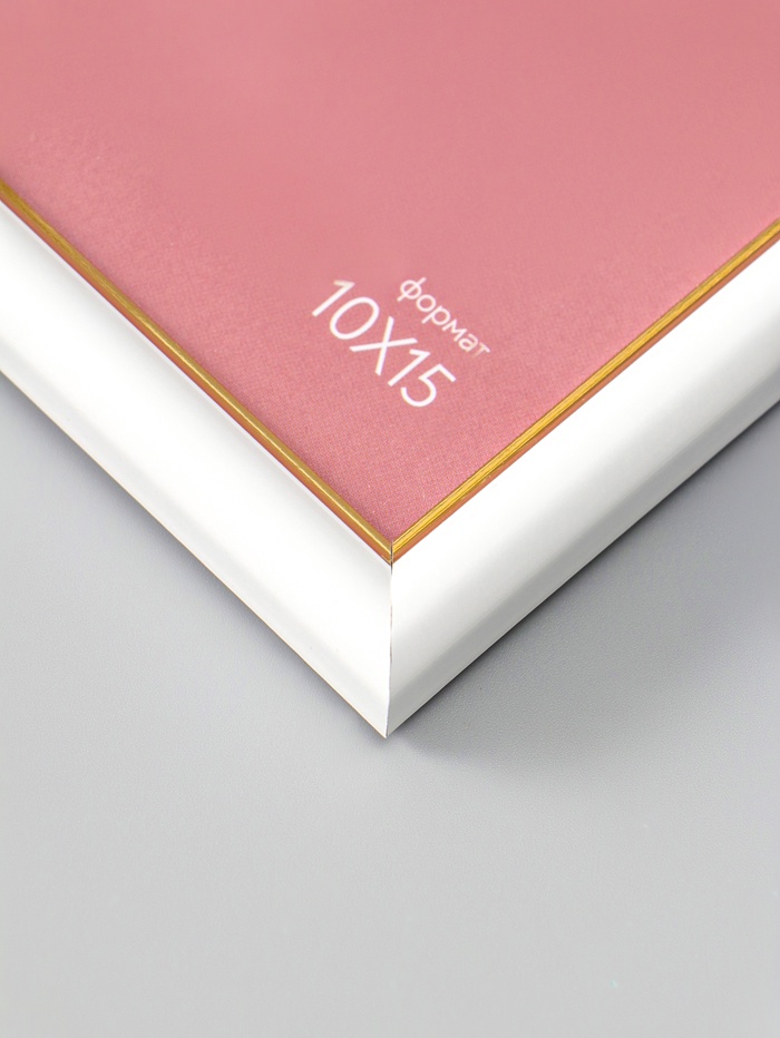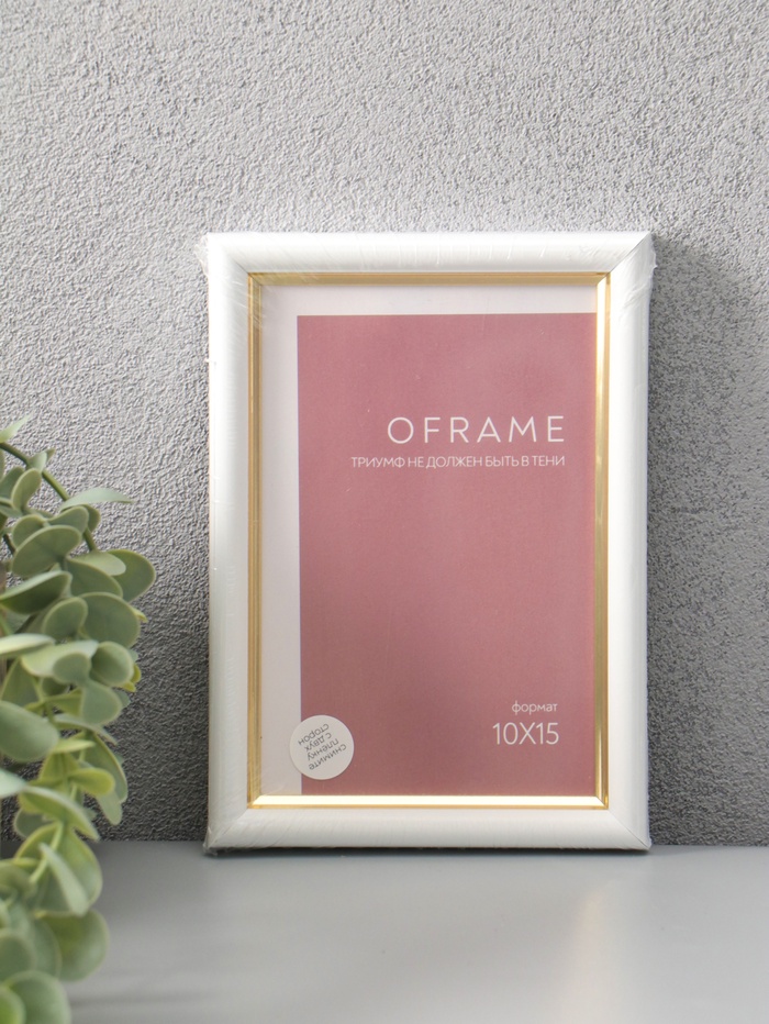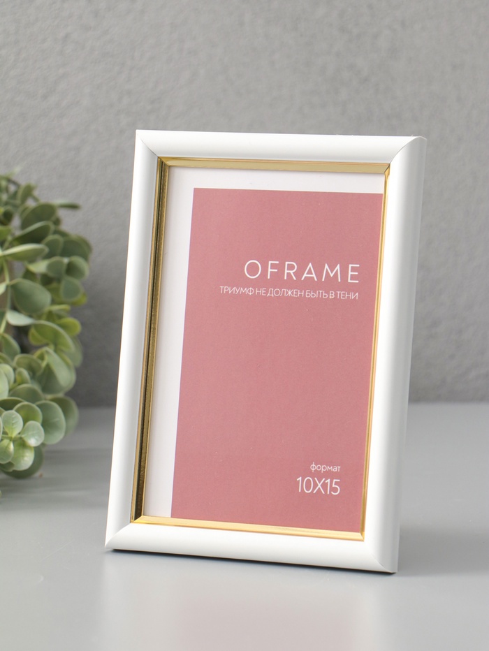 Фоторамка для фото 10х15 см "Oframe", пластик, белый с золотом, (пластиковый экран)