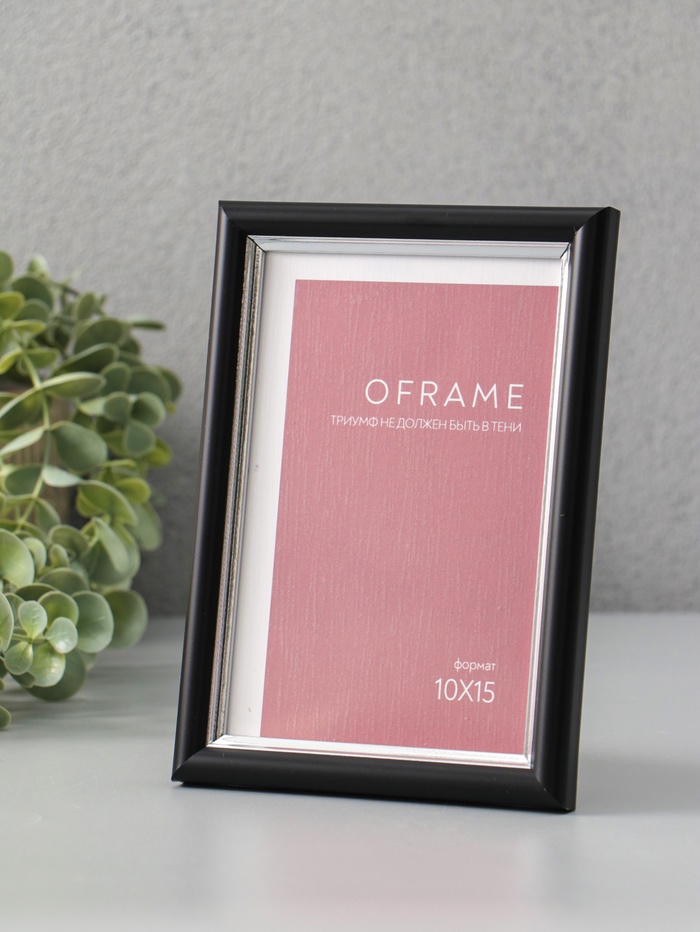 Фоторамка для фото 10х15 см "Oframe", пластик, чёрный с серебром, (пластиковый экран)