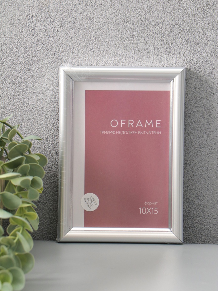 Фоторамка для фото 10х15 см "Oframe", пластик, серебряный, (пластиковый экран)