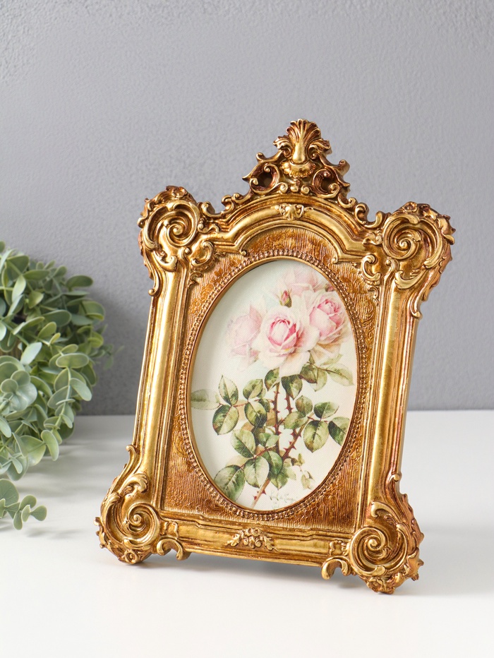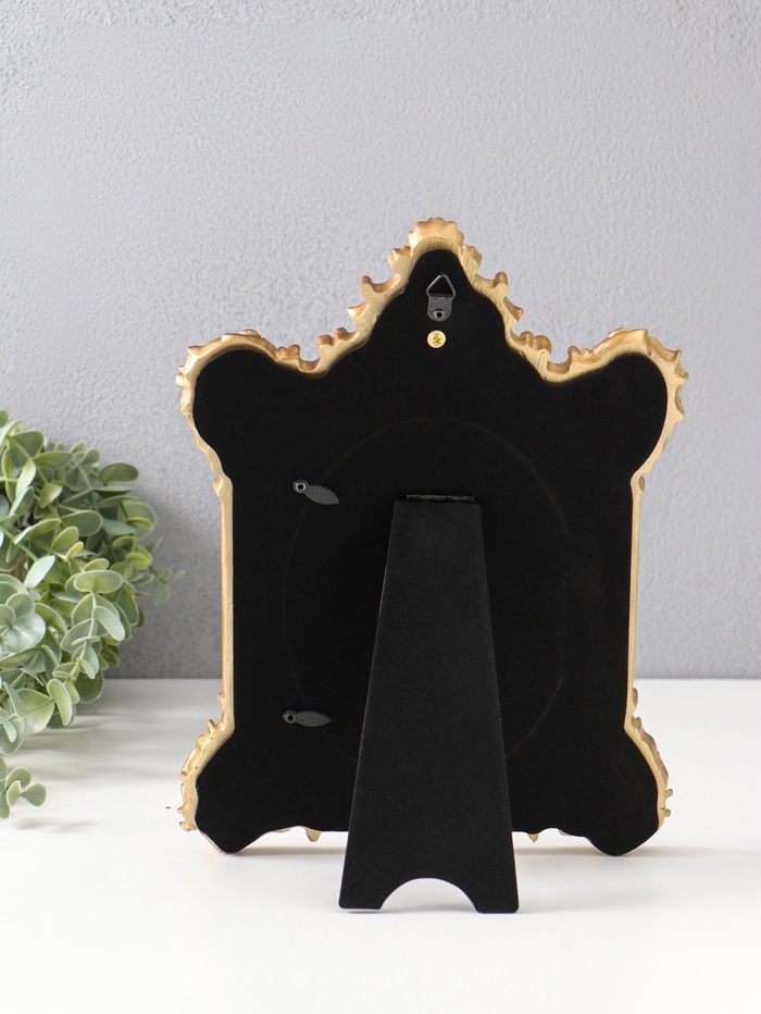 Эта золотистая фоторамка для одного снимка — универсальный аксессуар для вашего интерьера. Она подчеркнёт ценность особенного момента, обрамляя его в элегантную форму овала под стеклом. Благодаря классическому дизайну с орнаментом, рамка органично впишется в разные стили оформления — от кабинета до гостиной.