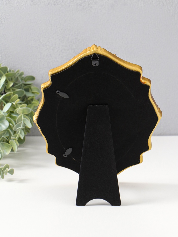 Эта золотистая фоторамка — изящный способ сохранить особенный момент. Классический овальный формат подчеркнёт теплоту портрета, семейного снимка или свадебной фотографии. Универсальный дизайн с ажурным орнаментом впишется в интерьер гостиной, спальни или кабинета, добавляя пространству ноту утончённого шика.