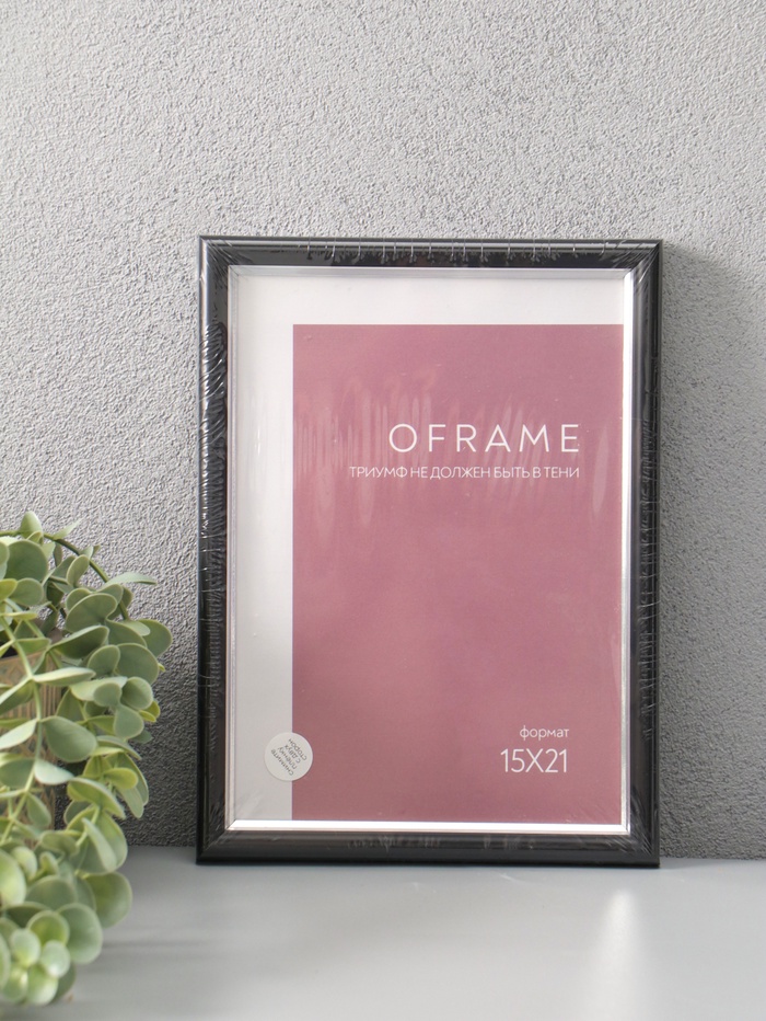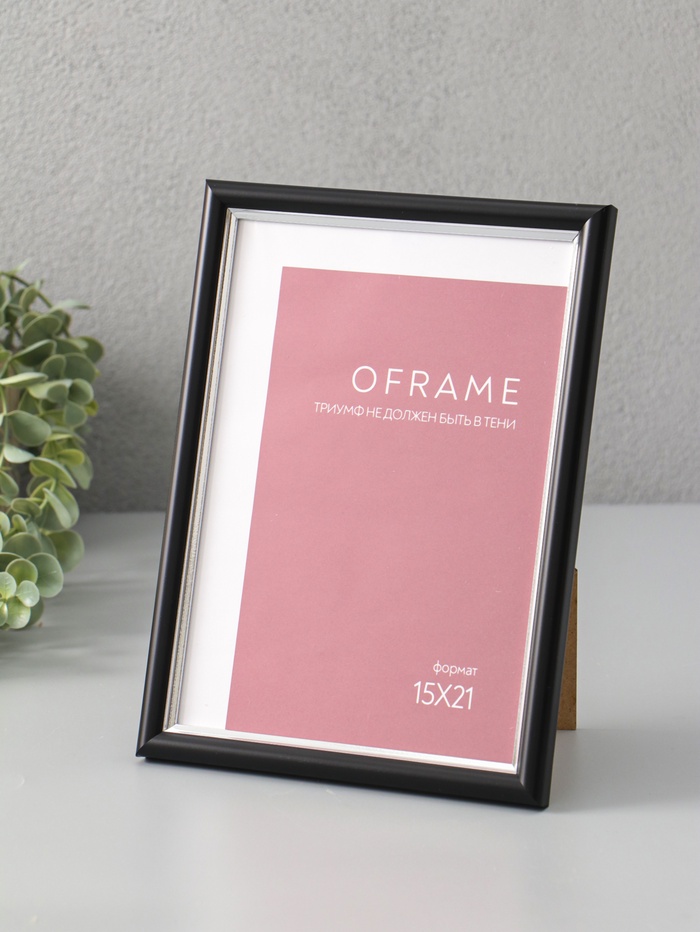 Фоторамка для фото 15х21 см "Oframe", пластик, чёрный с серебром, (пластиковый экран)