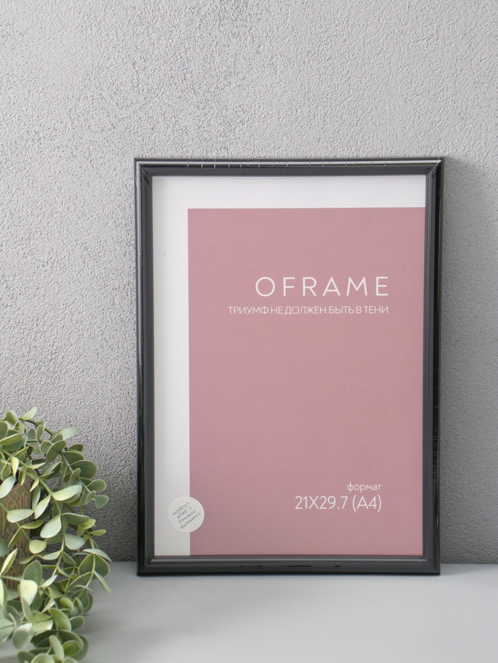 Фоторамка для фото 21х29,7 см (А4) "Oframe", пластик, чёрный, (пластиковый экран)