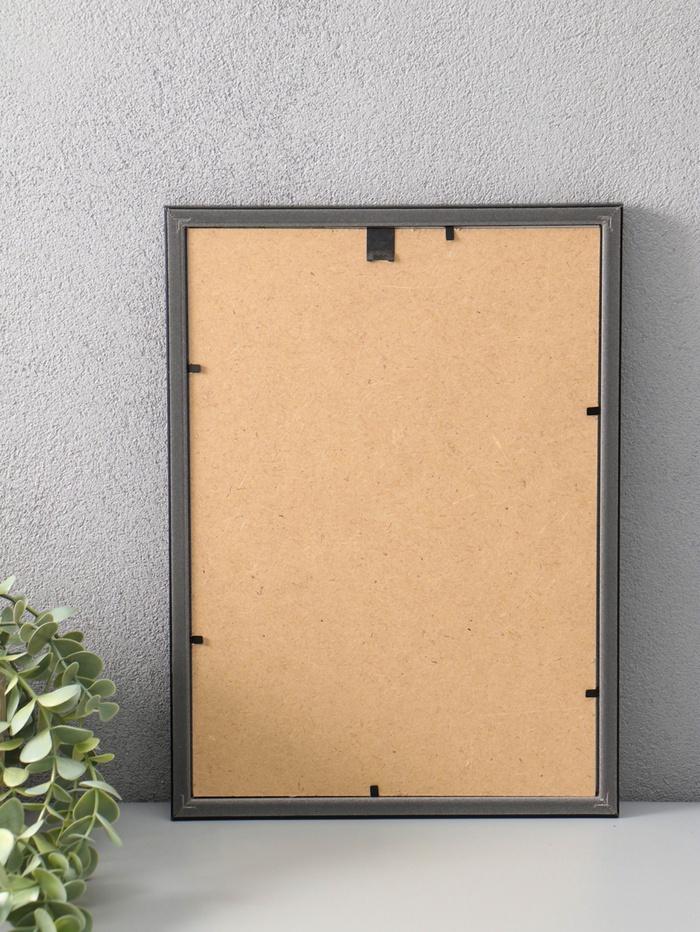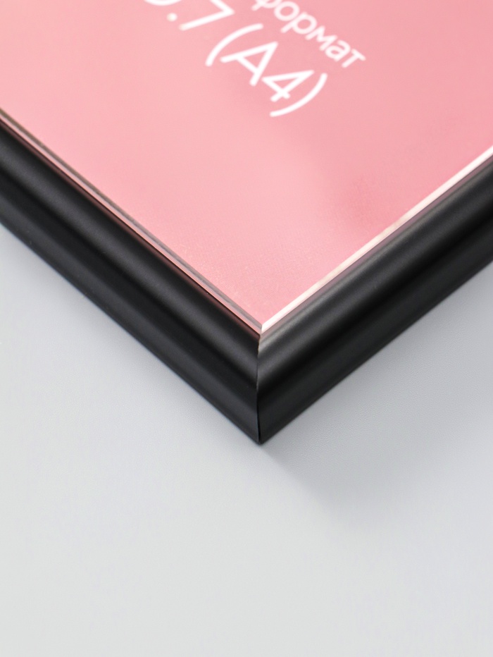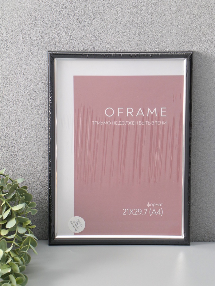 Фоторамка для фото 21х29,7 см (А4) "Oframe", пластик, чёрный с серебром, (пластиковый экран) 1097373