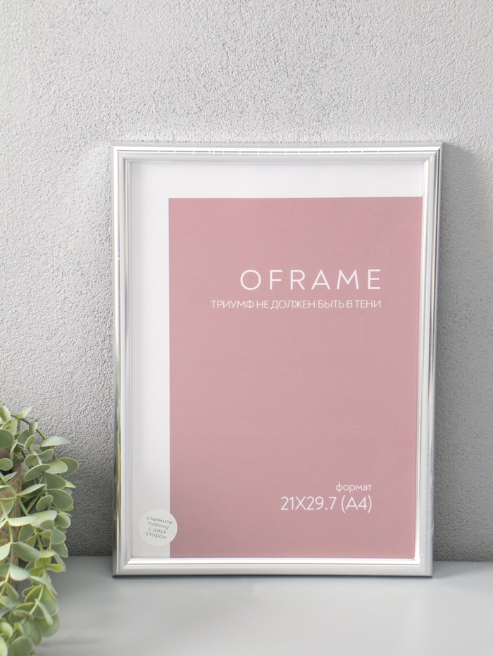 Фоторамка для фото 21х29,7 см (А4) "Oframe", пластик, серебро, (пластиковый экран)